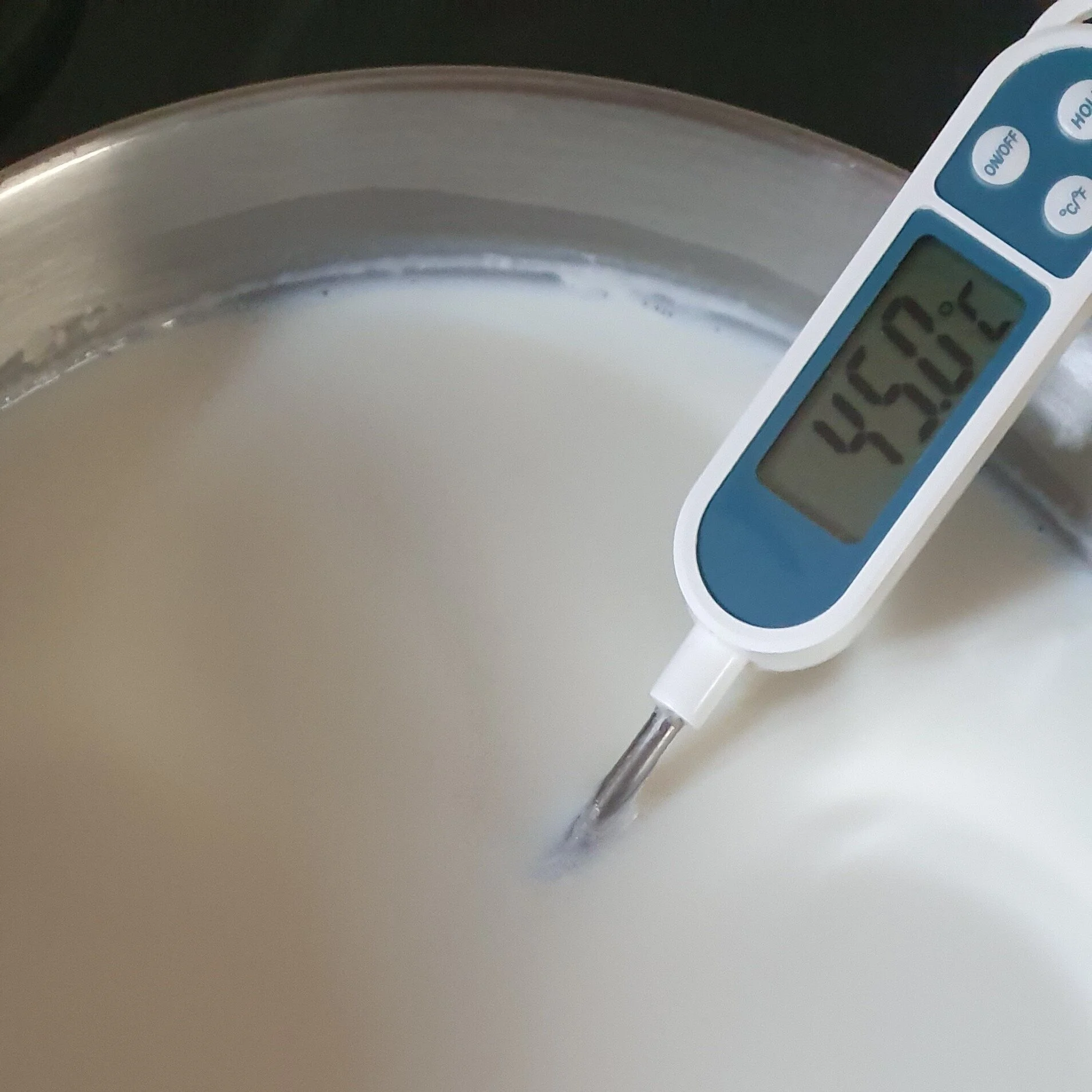 3. Спри котлона и щом млякото достигне температура от 37 градуса, отдели няколко лъжици в чашка.